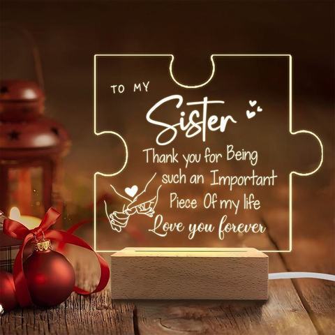 Personalizable Diytree Puzzle Acrílico Light-Up Regalo "Gracias" Citas para Hermana Dormitorio Mesita de noche Decoración Artesanía