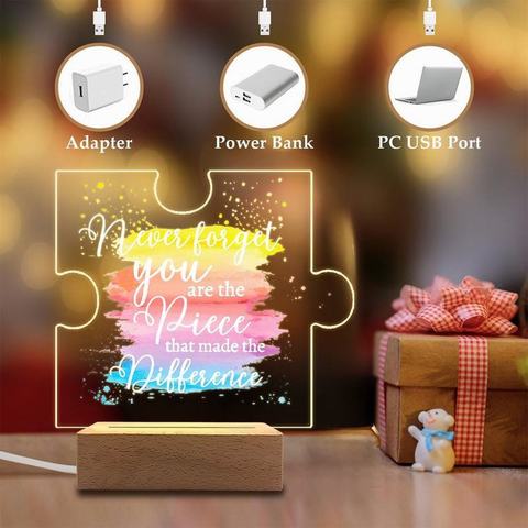 Gran oferta, regalo de Diytree Sisters, enchufe USB, forma de rompecabezas, Material acrílico, lámpara de placa de Base de madera luminosa para decoración de escritorio